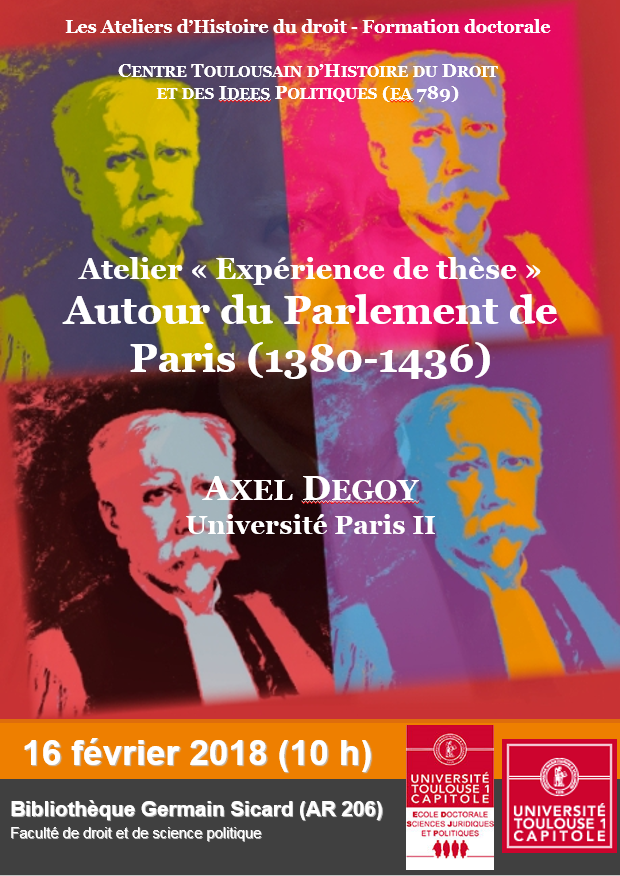 Atelier doctoral animé par Monsieur Axel Degoy (Docteur en histoire du droit, Paris 2)