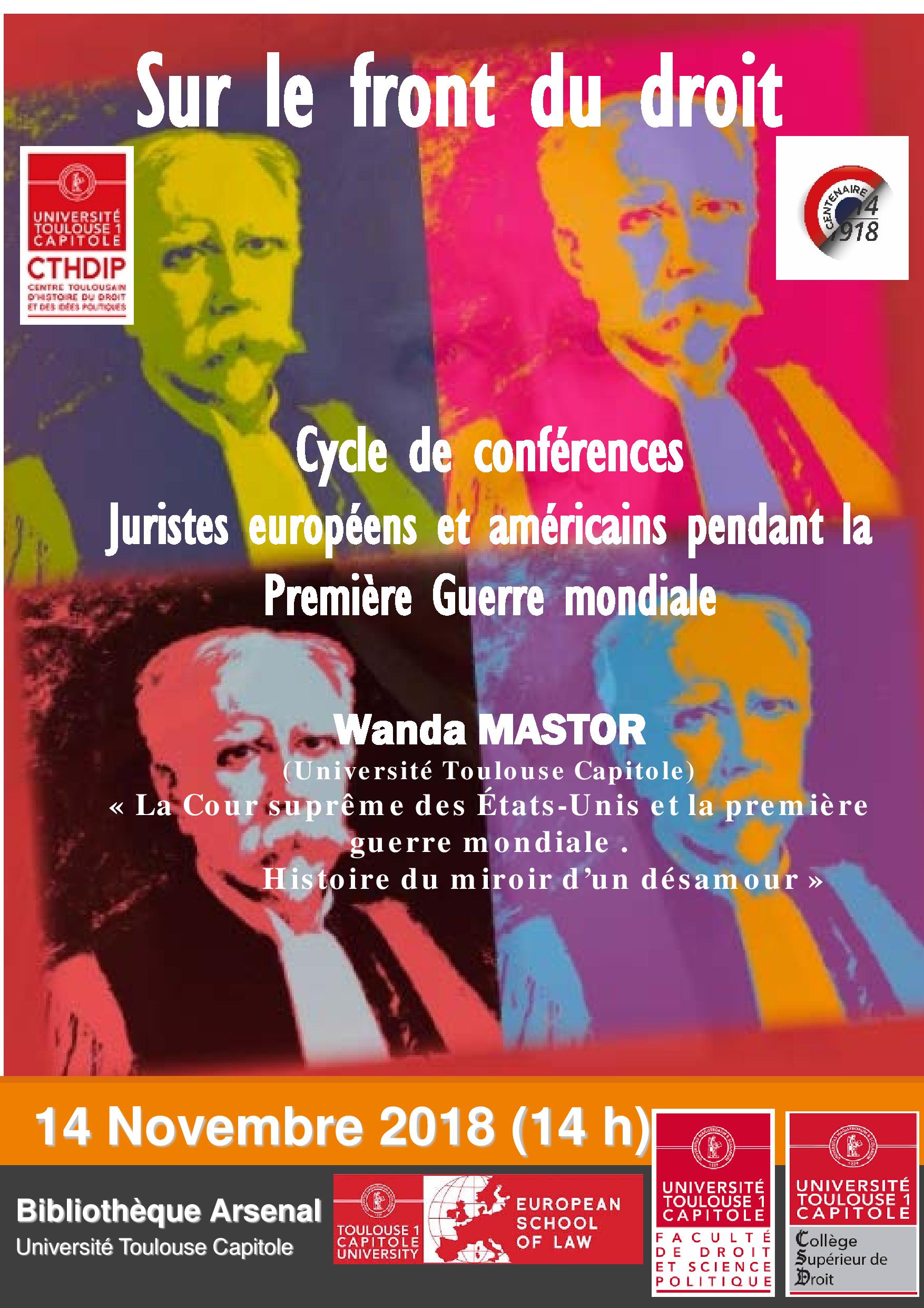 "La Cour suprême des États-Unis et la première guerre mondiale. Histoire du miroir d’un désamour", conférence du CTHDIP