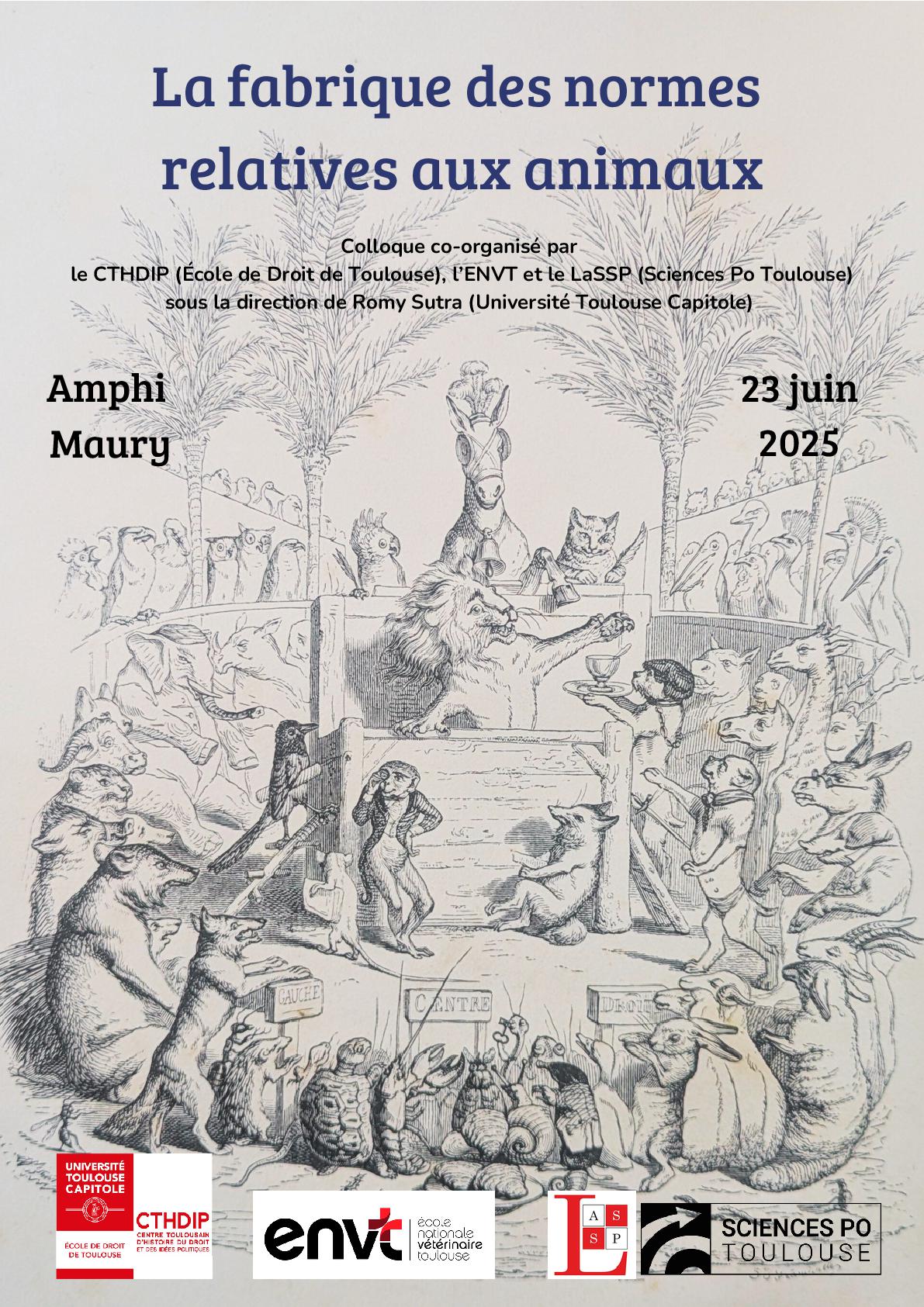 Paiement à : https://pligne-prod.ut-capitole.fr/esup-pay/evts/colloqueCTHDIP/InscriptionaucolloqueinternationalLafabriquedesnormesrelativesauxanimauxdu23juin20251