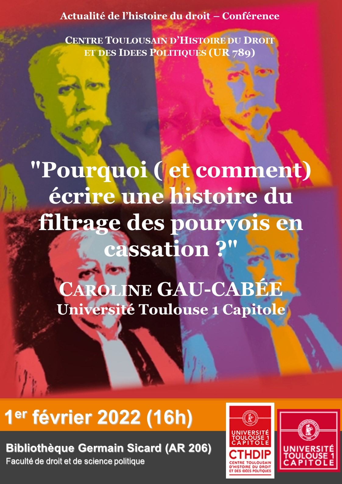 Madame Caroline Gau-Cabée est maître de conférences (HDR) en histoire du droit à l'Université Toulouse 1 Capitole et membre du CTHDIP. Son ouvrage La cassation française à l'épreuve du nombre est paru en 2021 aux éditions IRJS.