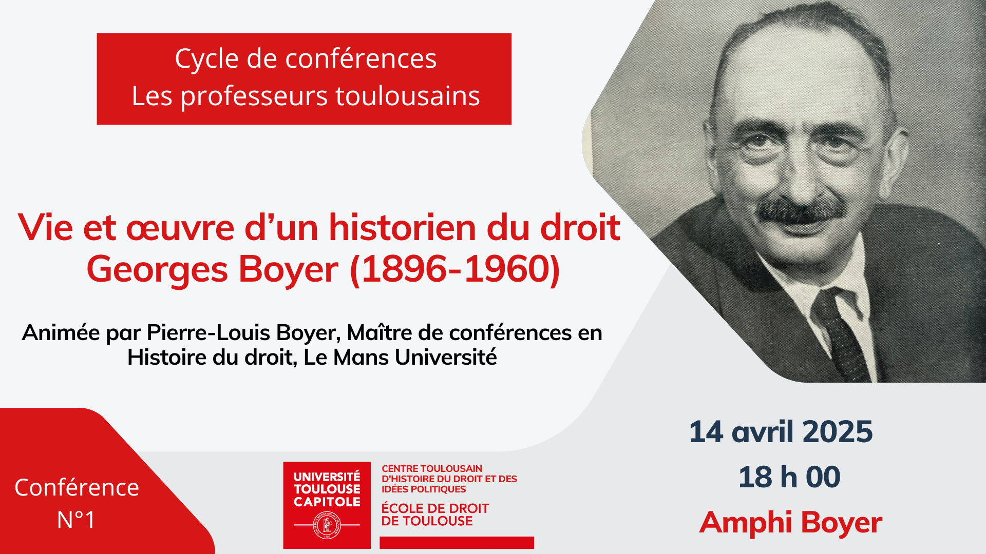 "Vie et œuvre d’un historien du droit. Georges Boyer (1896-1960)" conférence organisée par le CTHDIP dans le cadre du cycle de conférences "Les professeurs toulousains"