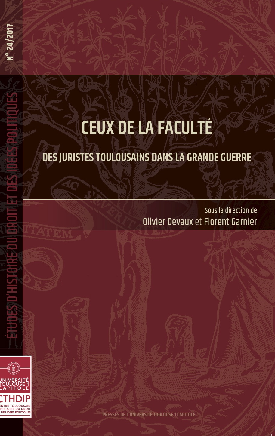 "Ceux de la faculté. Des juristes toulousains dans la grande guerre" - n° 24/2017 de la collection Etudes d'histoire du droit et des idées politiques (EHDIP), Olivier Devaux et Florent Garnier