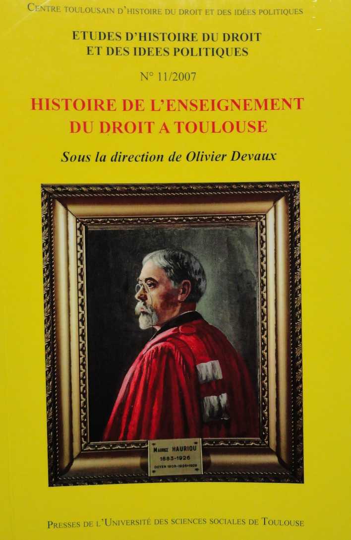 "Histoire de l’enseignement du droit à Toulouse - Etudes d'Histoire du Droit et des Idées Politiques n°11" dirigé par Olivier Devaux