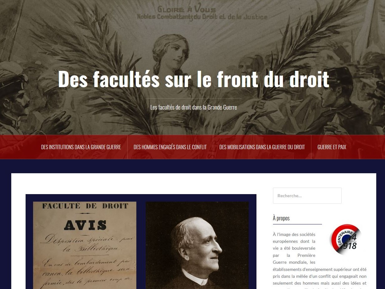 "Des hommes, des idées et des institutions sur le front du droit pendant la première Guerre mondiale", poursuite de l'exposition virtuelle (CTHDIP)