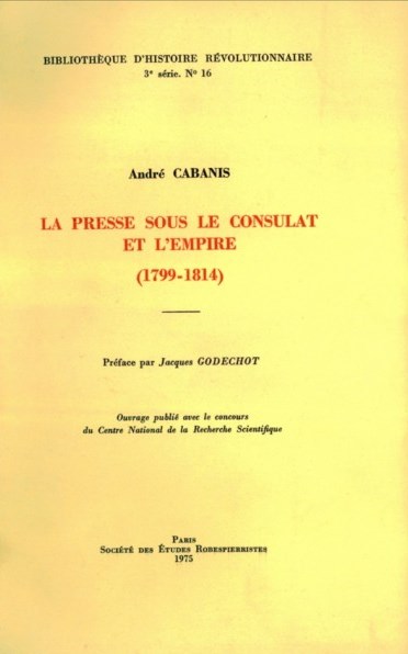 André Cabanis, La presse sous le Consulat et l'Empire, Société des études Robespierristes, Paris, 1975, 354 pages.